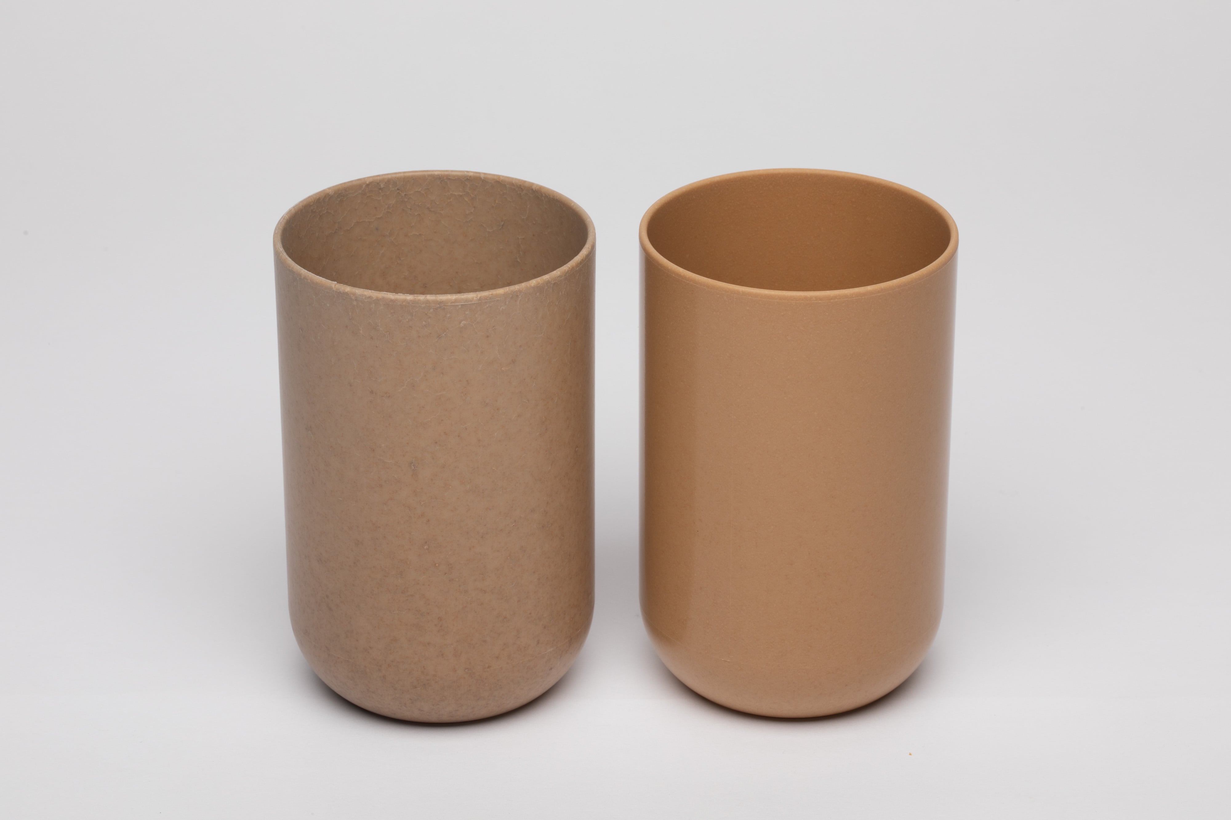 2代目のPAPLUS®タンブラー。PLA(ポリ乳酸)と紙を混錬する工程を変更したことにより先代よりもクリアな表情となりました。*3枚目が比較画像となります。